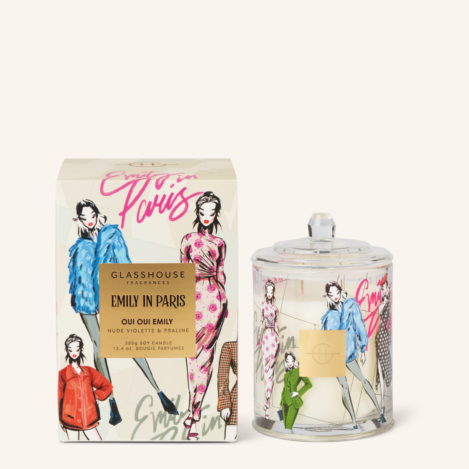 Glasshouse Fragrances' latest Limited Edition, Oui Oui Emily Nude Violette & Praline 380g Candle is here.